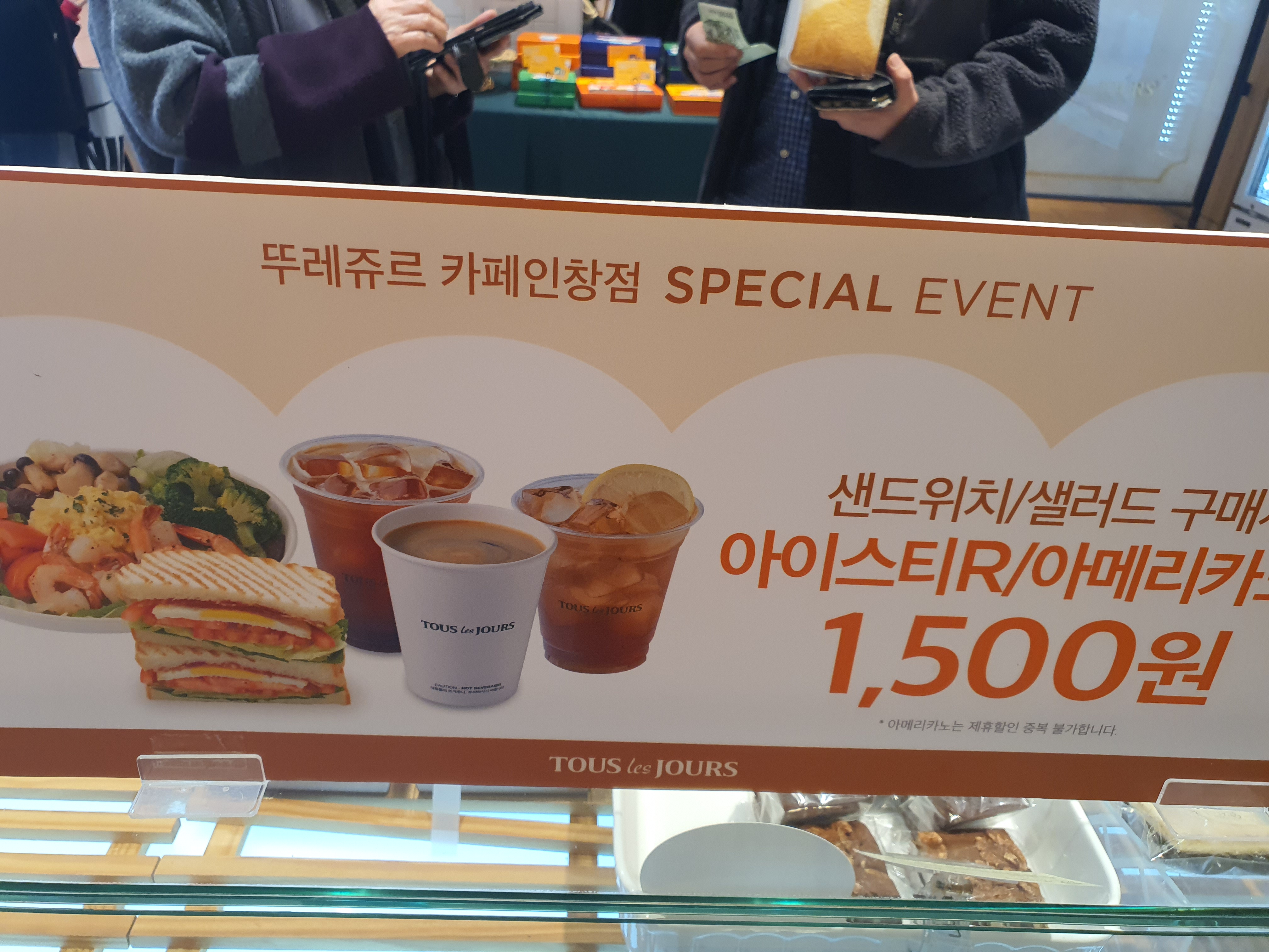 샌드위치 샐러드 구매할때 커피가 1,500원 아주 저렴하죠